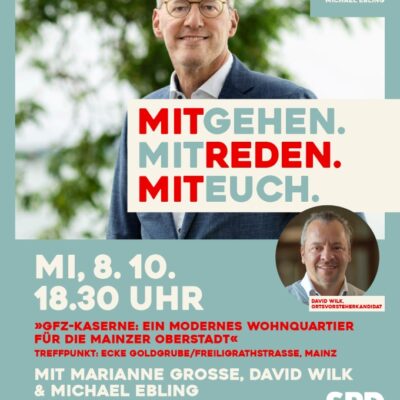 Michael Ebling möchte ja bekanntermaßen in die „2. Halbzeit“ seiner Amtsperiode als Oberbürgermeister aus Mainz und für Mainz gehen. Dies kann jeder Mainzer Wähler am 27.Oktober zwischen 8 Uhr und 18 Uhr mitentscheiden. Dann wird sich zunächst einmal entscheiden, wer von den fünf Kandidaten in die wahrscheinliche Stichwahl darf. Am 10.11. würde es dann in die Stichwahl gehen.