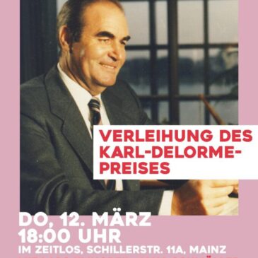 In diesem Jahr verleiht die SPD anlässlich seines Todestages zum fünften Mal den Karl-Delorme-Preis der Mainzer SPD. Mit dem Preis werden gesellschaftliche Gruppen, Vereine, Initiativen Institutionen oder Personen ausgezeichnet, die in herausragender Art und Weise soziales Engagement für die Stadt Mainz und die Bürger:innen gezeigt haben. In diesem Jahr freut sich die Jury, dass gleich zwei tolle Organisationen ausgezeichnet werden … Weiterlesen